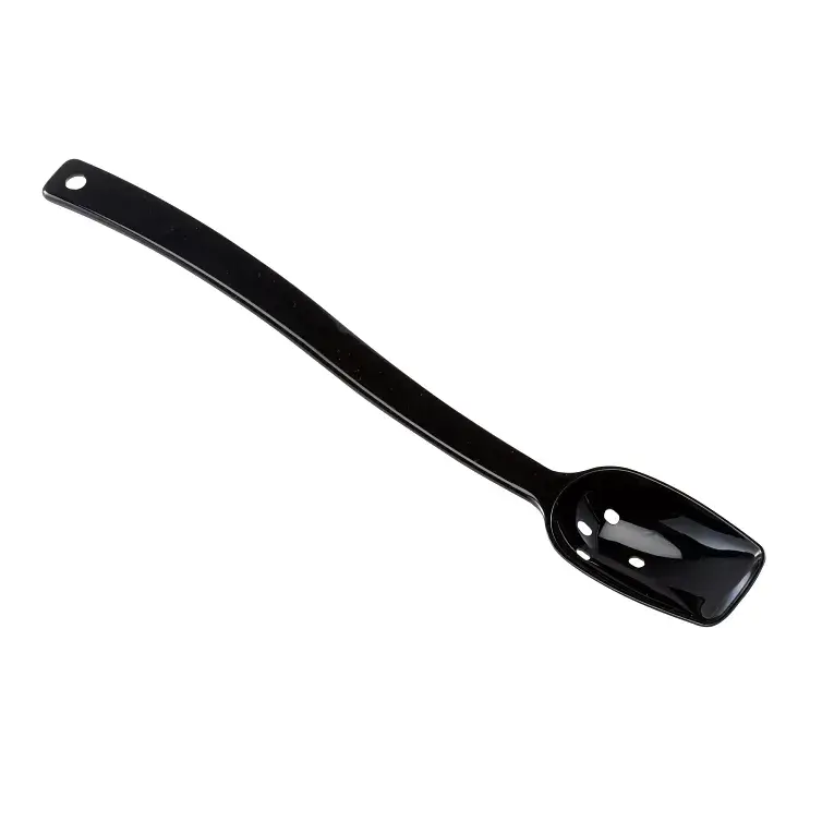 Camwear Serving Spoons are an economical improvement on the metal spoon that won’t tarnish, bend, or dent. Recommended for use with Cambro serving bowls, deli crocks, and storage containers, these virtually unbreakable serving spoons are a great addition to your kitchen. A wide handle and molded-in thumb rest ensure a solid, ergonomic grip, with a notched back to rest on pans. Spoons are perforated to allow liquid to drain out of the bottom during service.